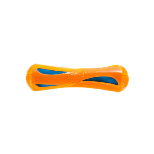 The Chuckit! Hydro Squeeze Bumper is a bone-shaped dog toy that absorbs water. While bouncing or when your dog bites the toy, water is released, cooling your dog down on summery days