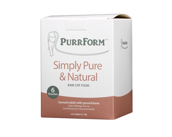 PURRFORM farmed rabbit is a complete natural pet food for adult cats that contains nothing more than the ingredients listed.